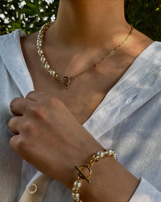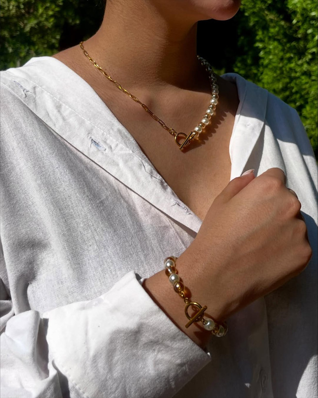 قابل بصورت جداگانه متریال: مرواريد شيشه اي شامپايني مرواريد صدفي سنگي زنجير استيل قفل تي استيل تمام متريال درجه يك ، رنگ ثابت و ضدحساسيت هستند قابليت در سايز دلخواه